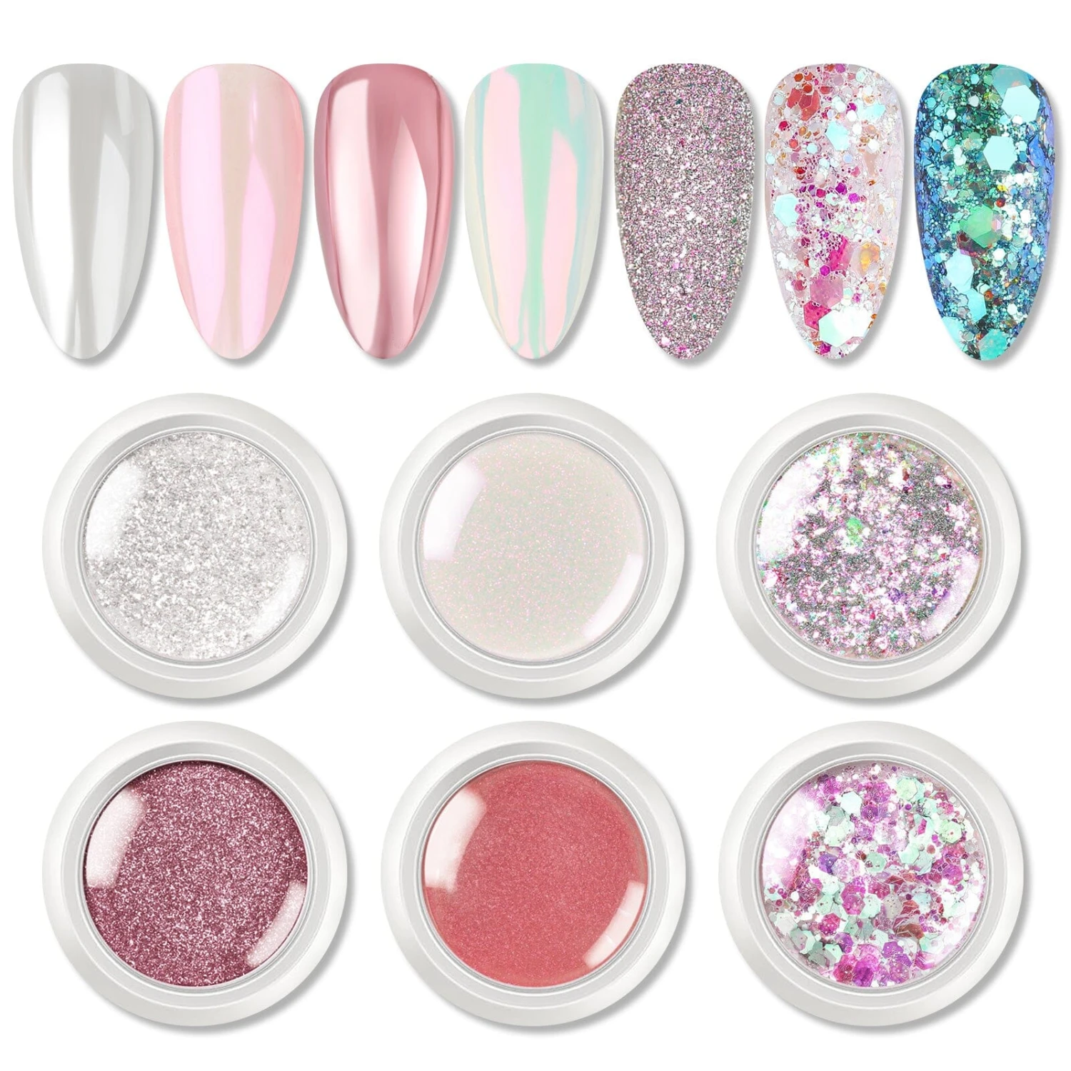 BORN PRETTY 6 Box Chrome Powder-Pink Nail Powder Kit Glitter Powder Rubbing Dust on Manicure Decorations Powder