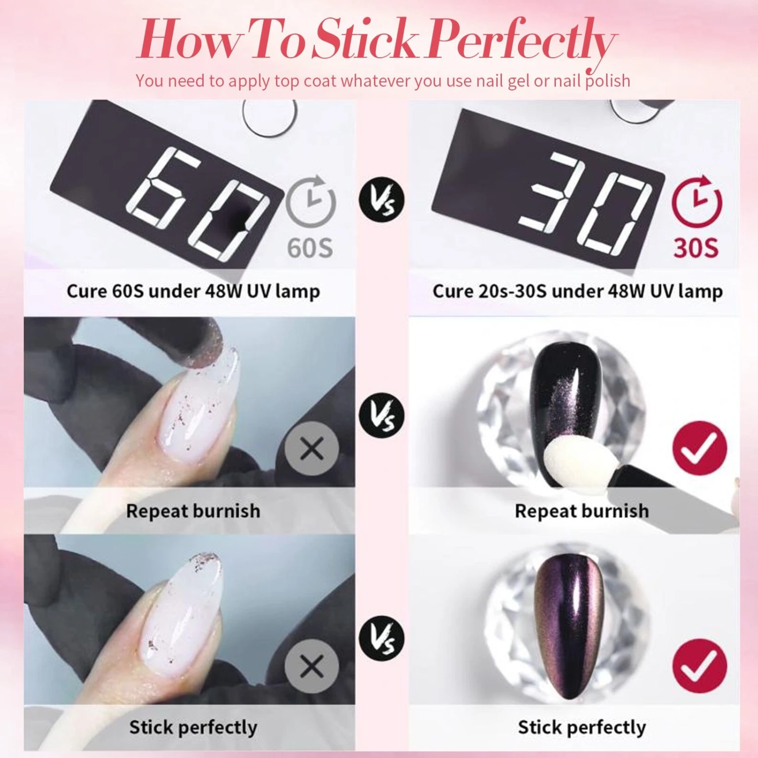 5. Apply top coat and cure for 60s.