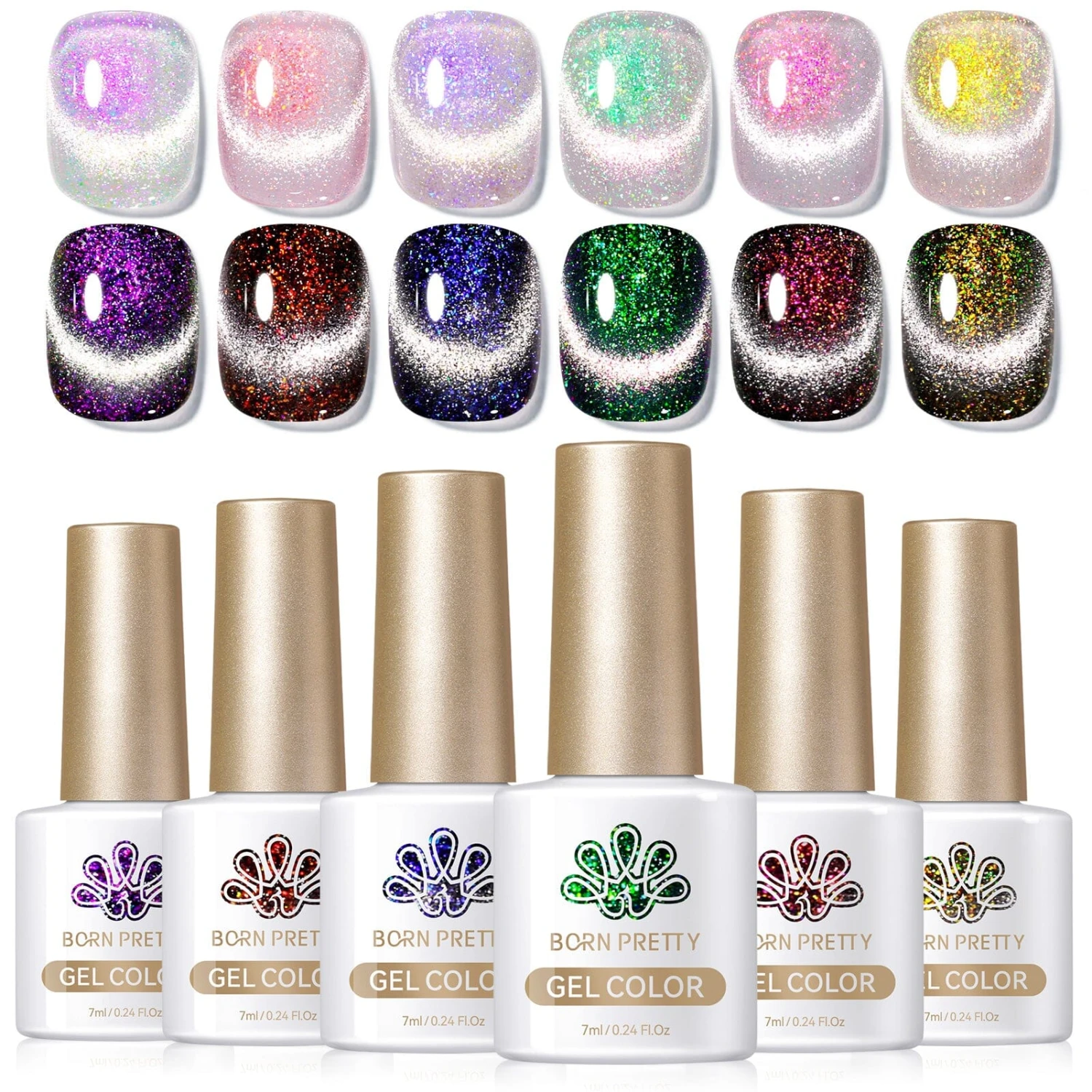 BORN PRETTY 6 Bottles 7ml Cat Magnetic Gel Nail Polish, 1pc Magnetic Stick.