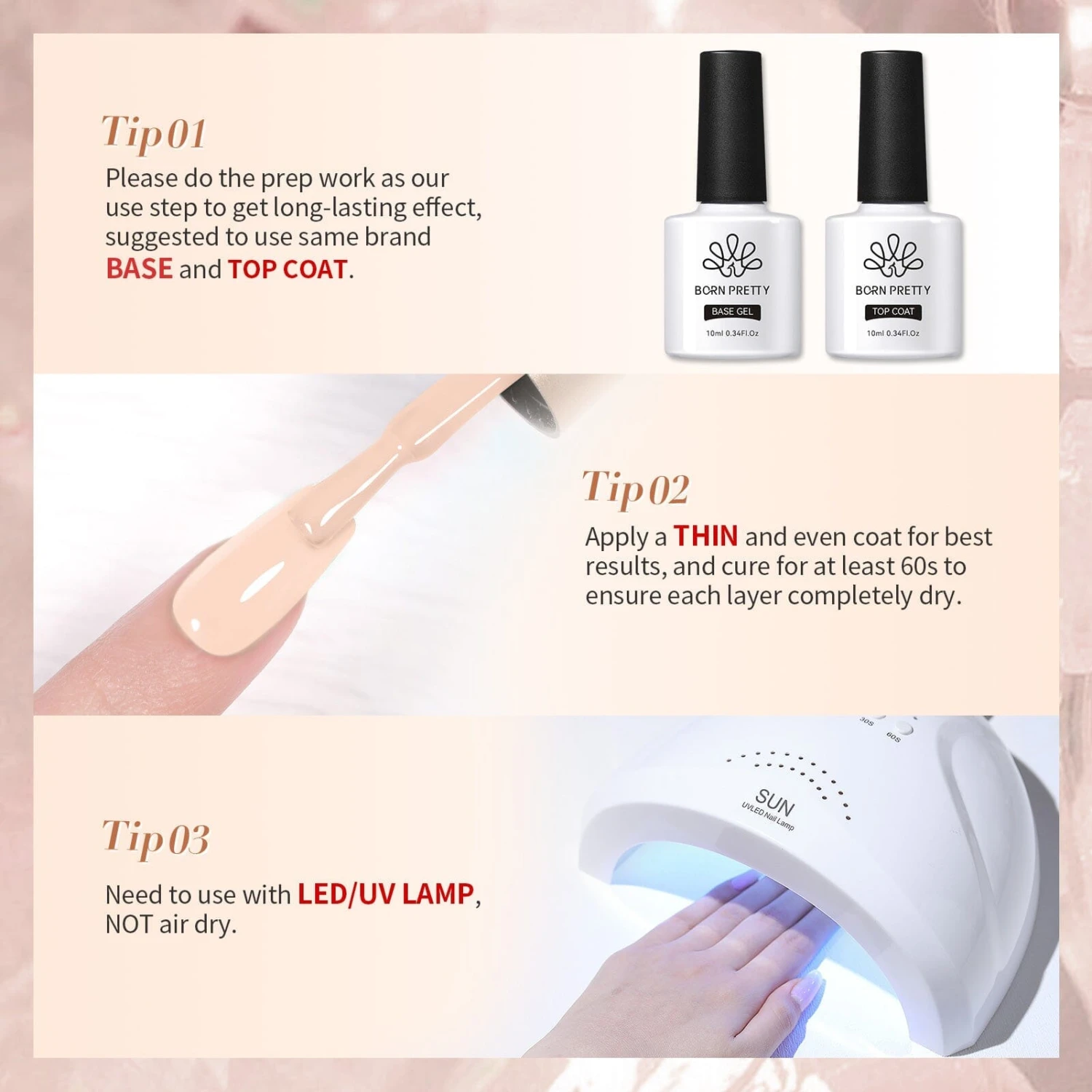 Step 3. Apply Base gel first,which can make polish lasting longer, cure with UV lamp or LED lamp. (Necessary)