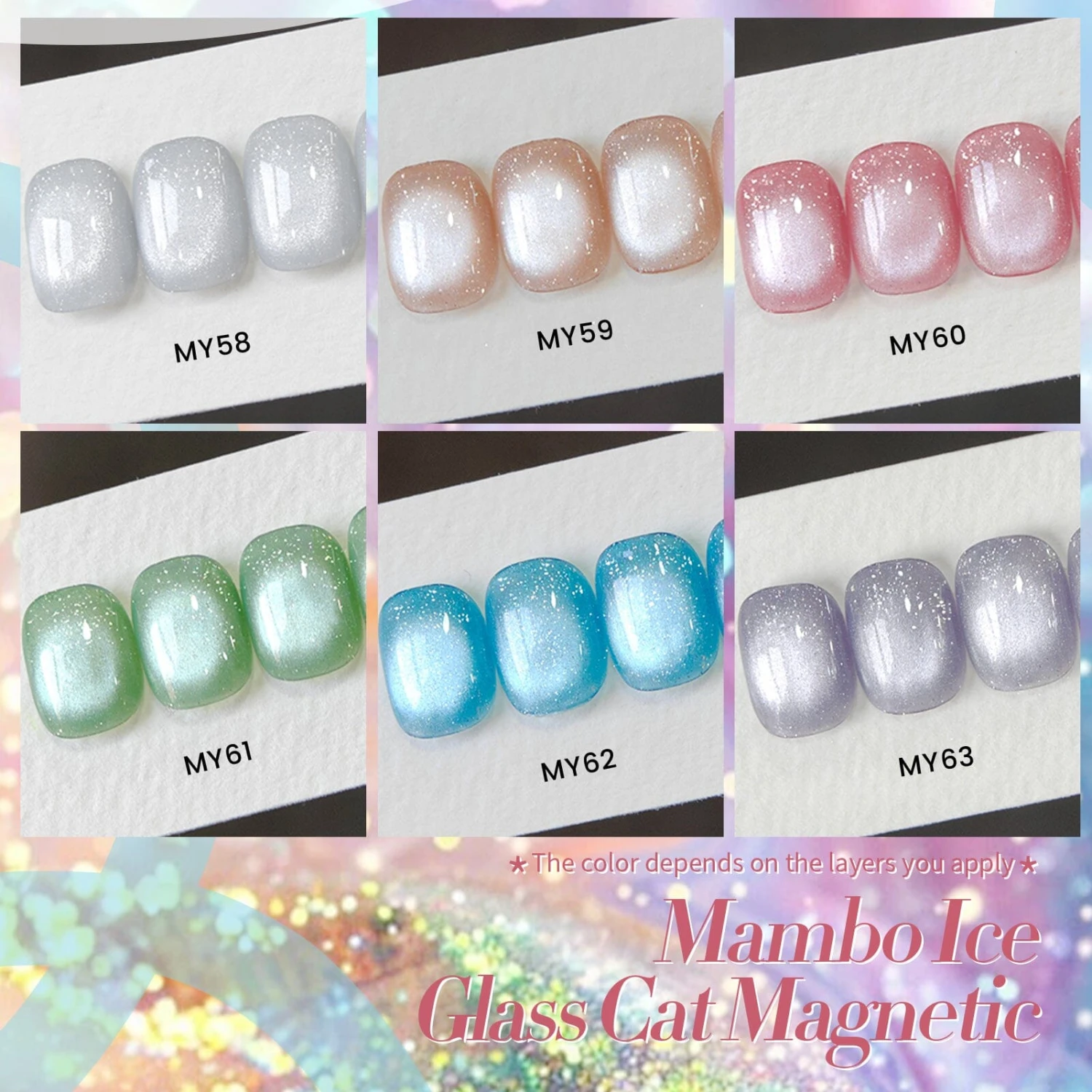 BORN PRETTY 6 Bottle 7ml Mambo Ice Glitter Cat Magnetic Gel ultra Shine Soak Off UV Gel Nail Art Varnish