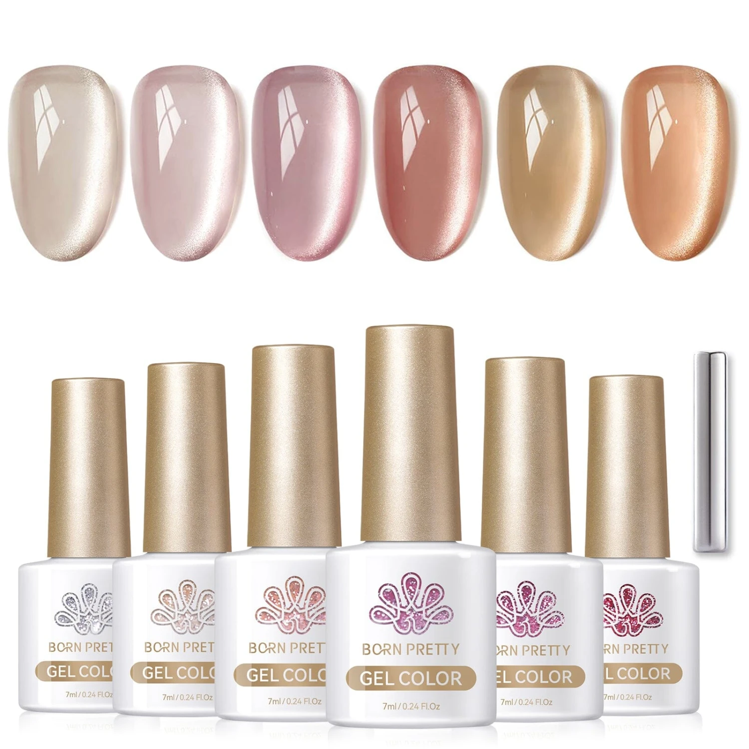 BORN PRETTY 6 Bottles 7ml Cat Magnetic Gel Nail Polish, 1pc Magnetic Stick.
