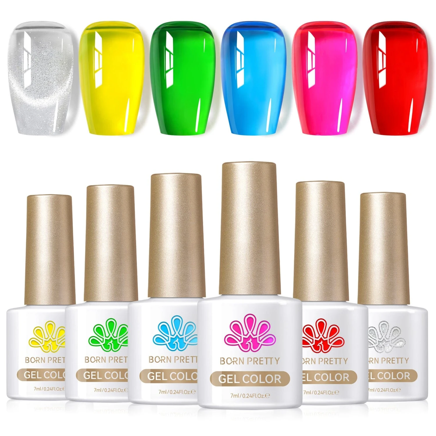 BORN PRETTY 6 Bottles 7ml Mystic Aurora Ice Jelly Gel ultra Shine Soak Off UV Gel Nail Art Varnish.