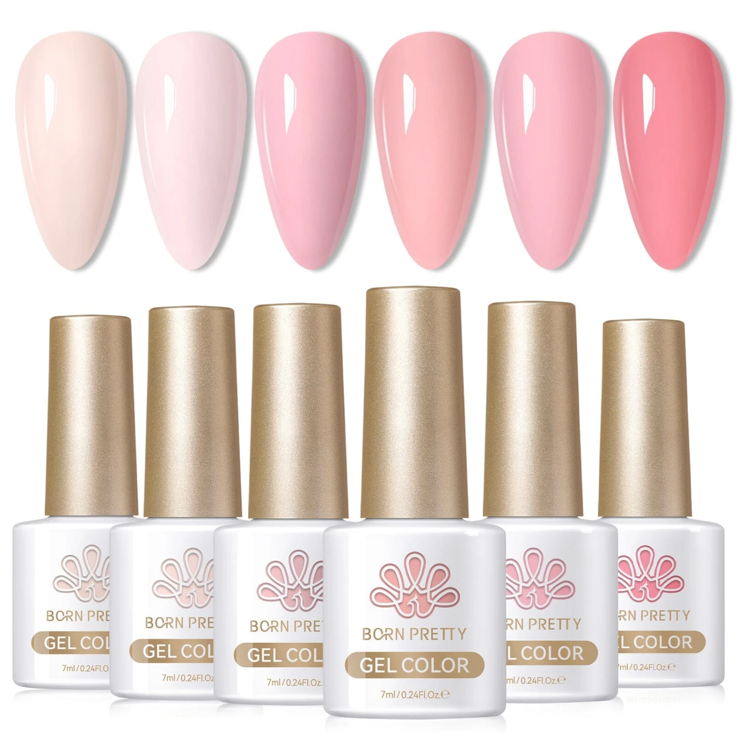BORN PRETTY 6 Bottles 7ml Barely Beauty Nail Gel Polish Nail Supplies Vernis Semi Permanent Nail Art Manicure Soak Off LED UV Gel Nail Varnishes