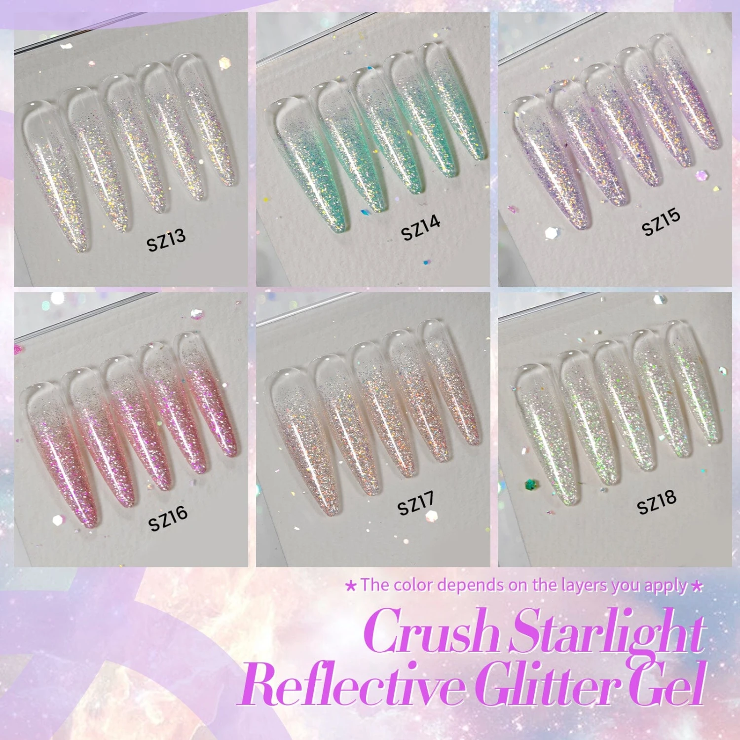 BORN PRETTY 6 Bottle 7ml Crush Starlight Reflective Glitter Gel ultra Shine Soak Off UV Gel Nail Art Varnish.