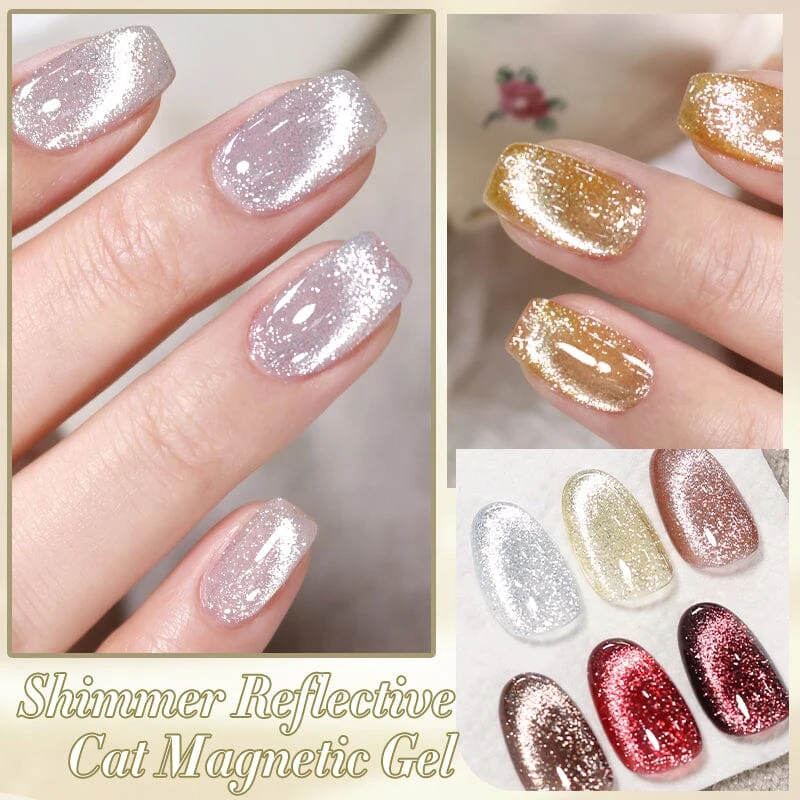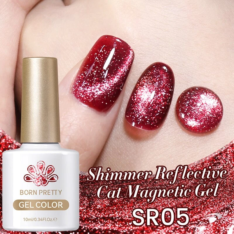 BORN PRETTY 6 Bottles 10ml Shimmer Reflective Cat Magnetic Gel Nail Polish, 1pc Magnetic Stick.?