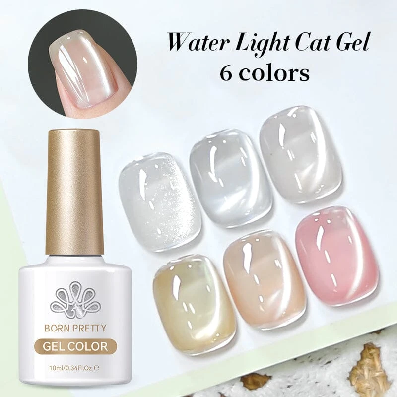 6 Bottles BORN PRETTY 10ml Water Light Cat Magnetic Gel Nail Polish, 1pc Magnetic Stick.