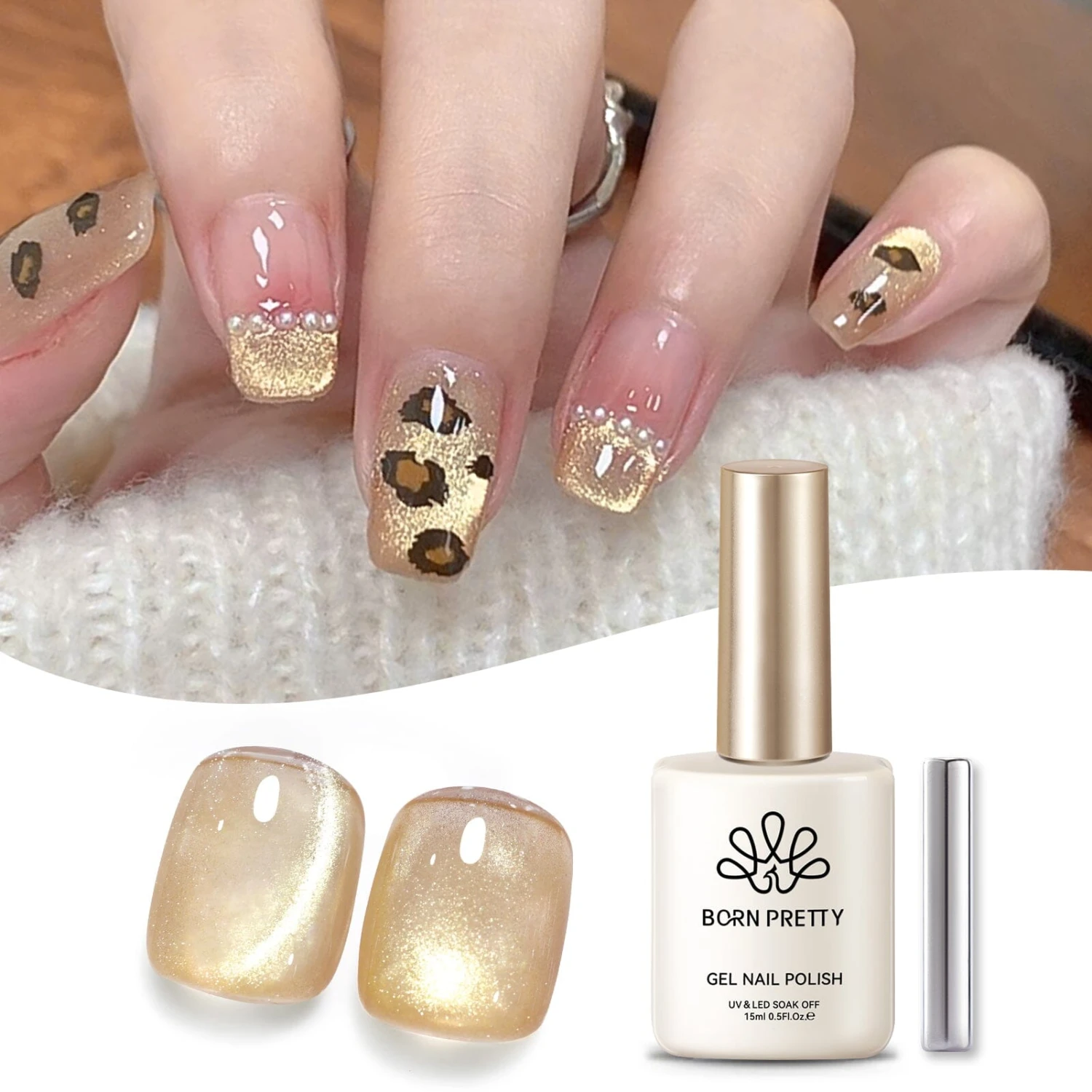 BORN PRETTY 15m Gold Cat Magnetic Gel ultra Shine Soak Off UV Gel Nail Art Varnish.