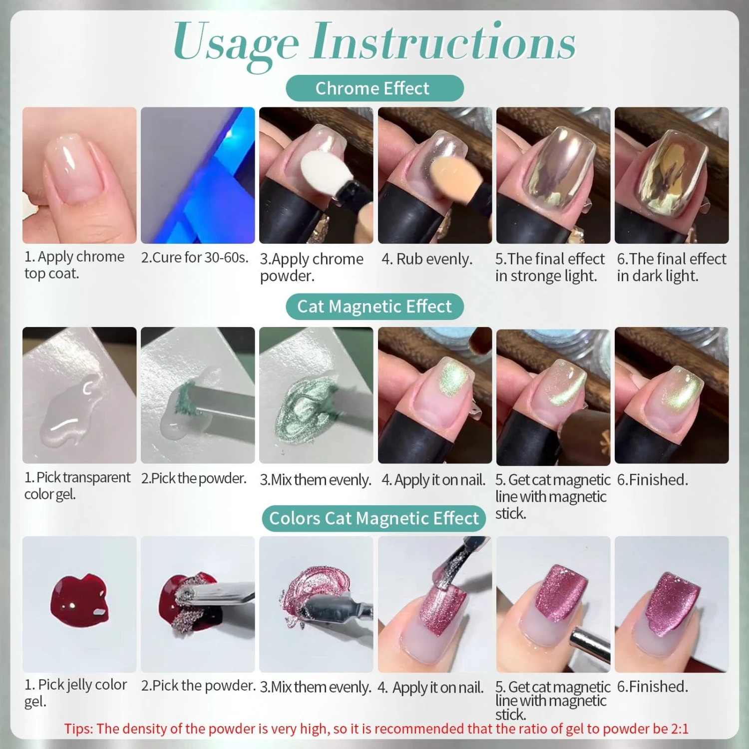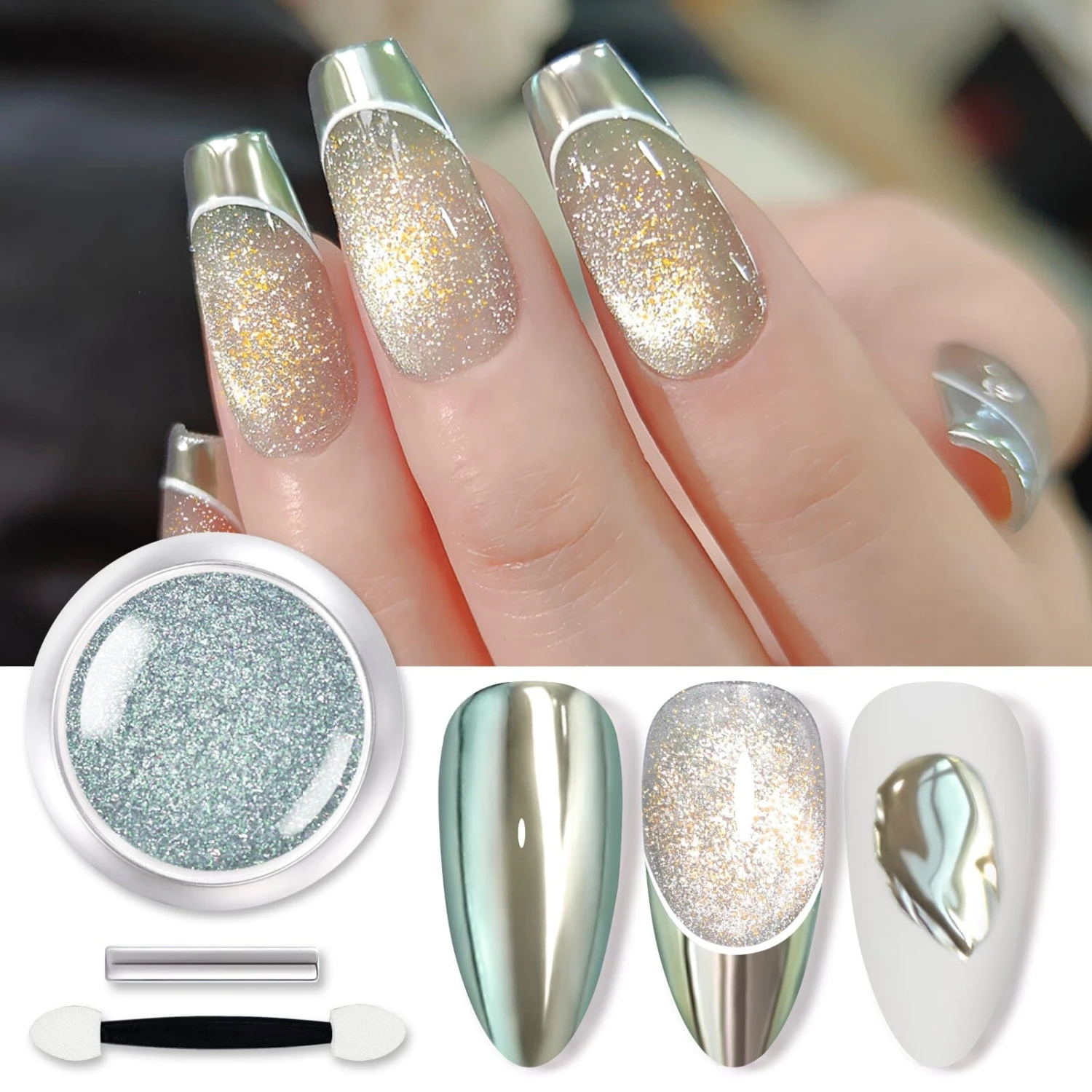 1 Box BORN PRETTY Cat Magnetic Chrome Powder-Green Magnetic Glitter Powder Rubbing Dust on Manicure Decorations Powder.