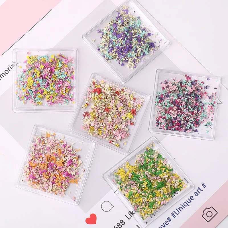 1. ?Cute flower in different shapes and colors, You’ll love the color varieties our dried flower collection has to offer to provide tons of fun for you customizing your own floral nails.