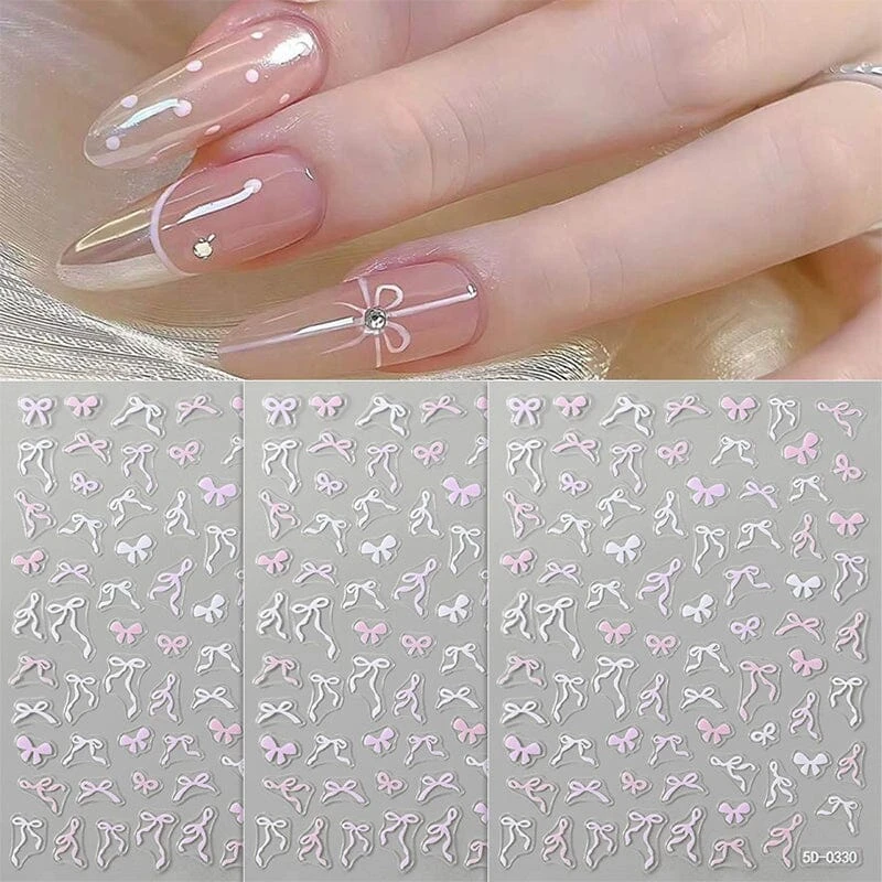 Pattern: White /Pink/Black Bowknot Nail Charms Sticker