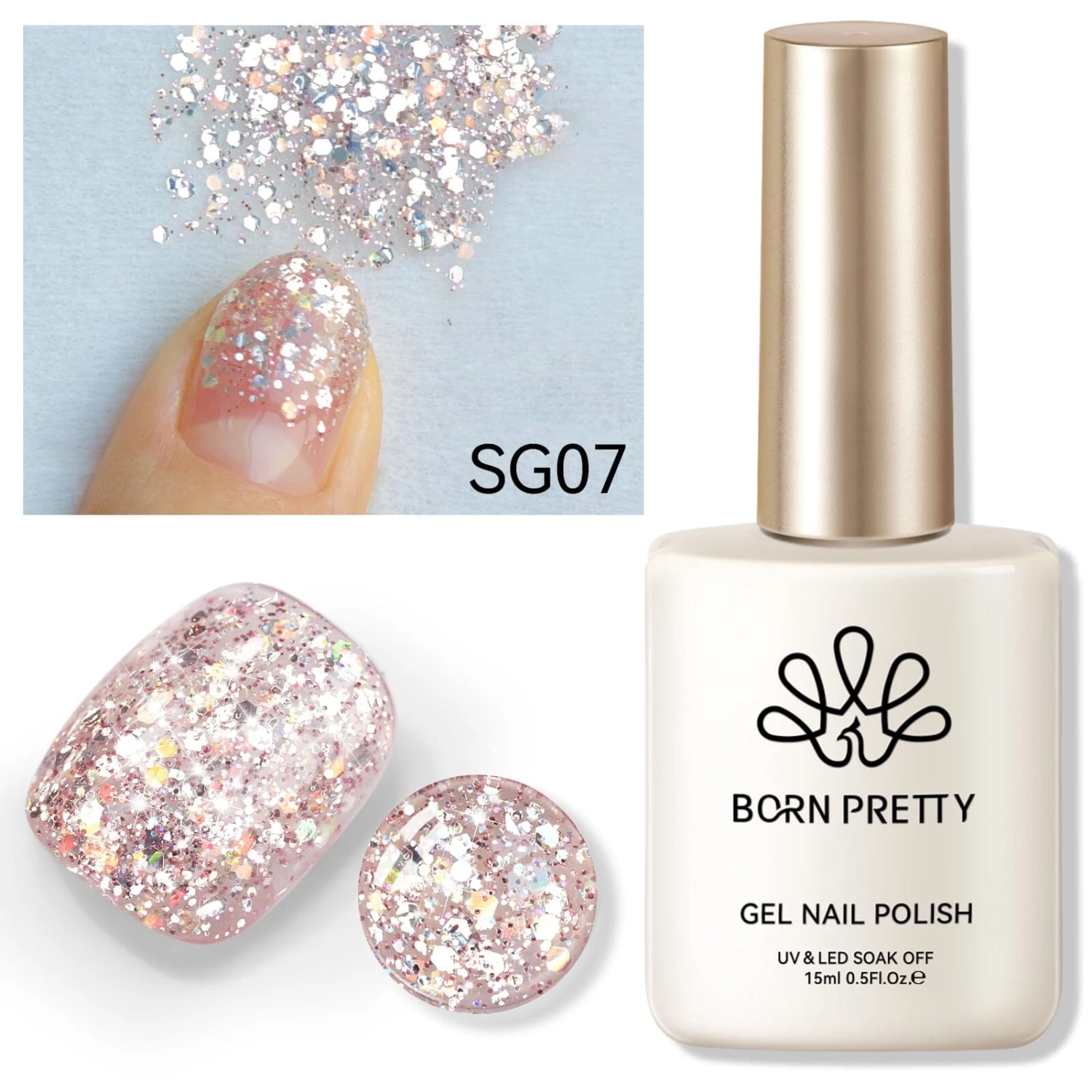 BORN PRETTY 15ml ?Sequins Gel Sequins Gel ultra Shine Soak Off UV Gel Nail Art Varnish.