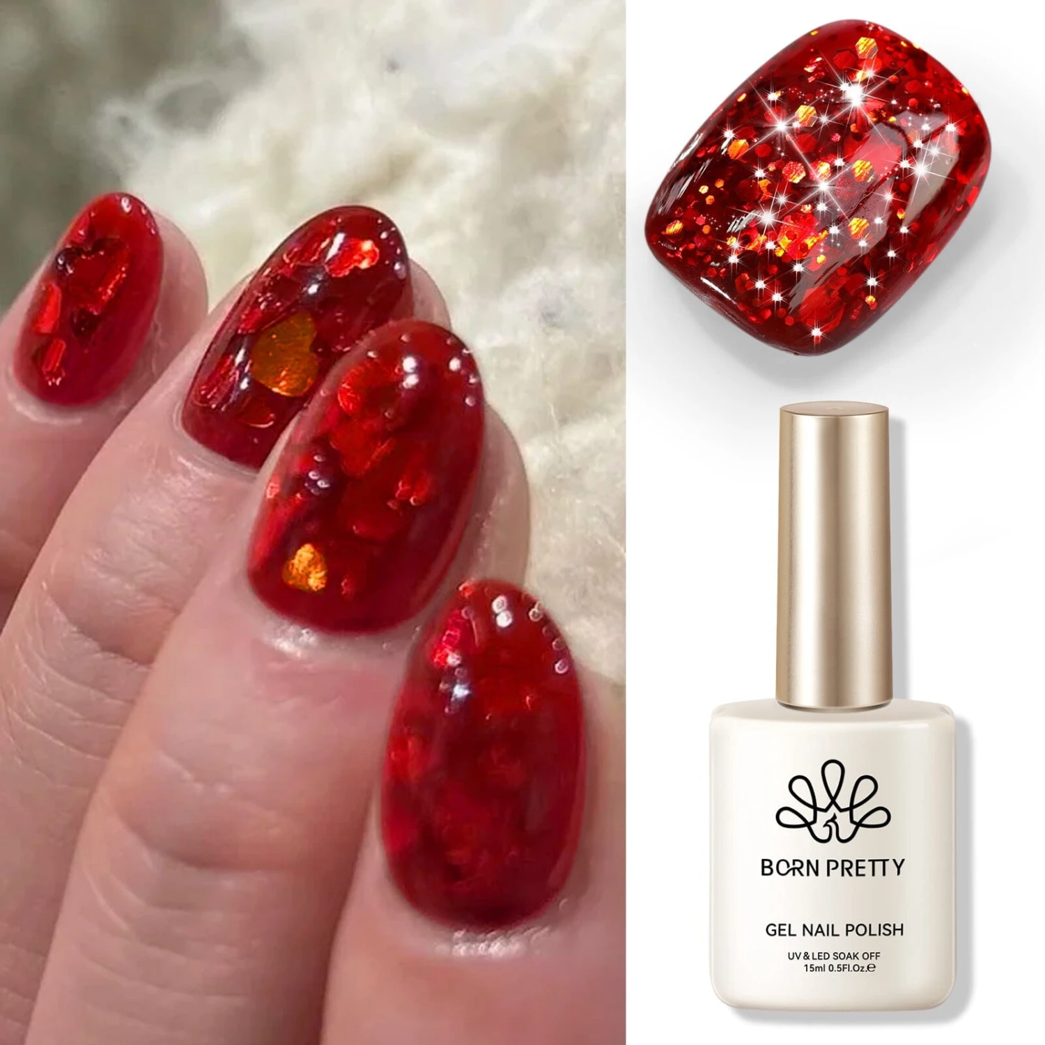 BORN PRETTY 15ml ?Sequins Gel Sequins Gel ultra Shine Soak Off UV Gel Nail Art Varnish.